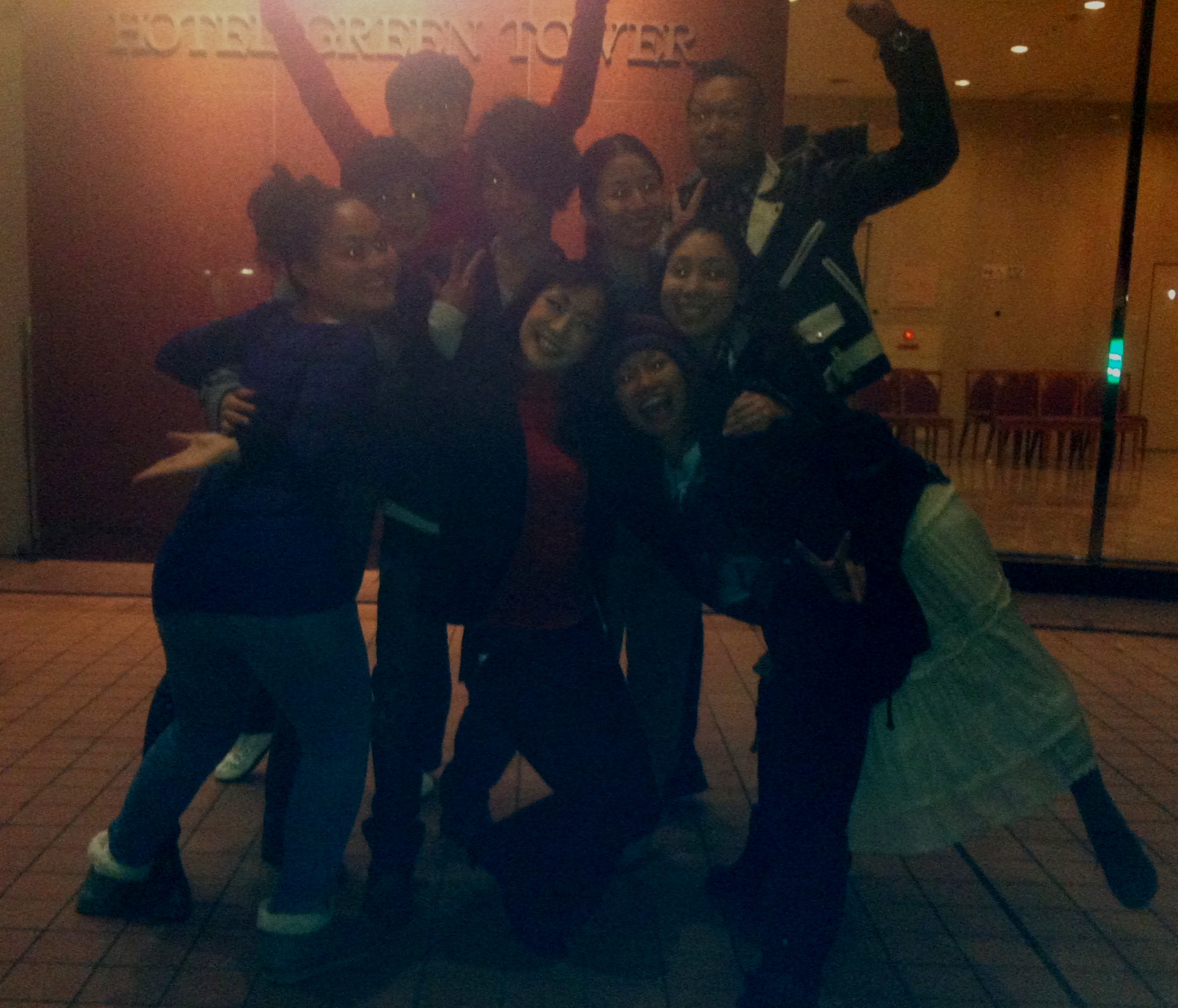 昨夜、帰り際のキャスト。ホテルグリーンタワー幕張の玄関にて。