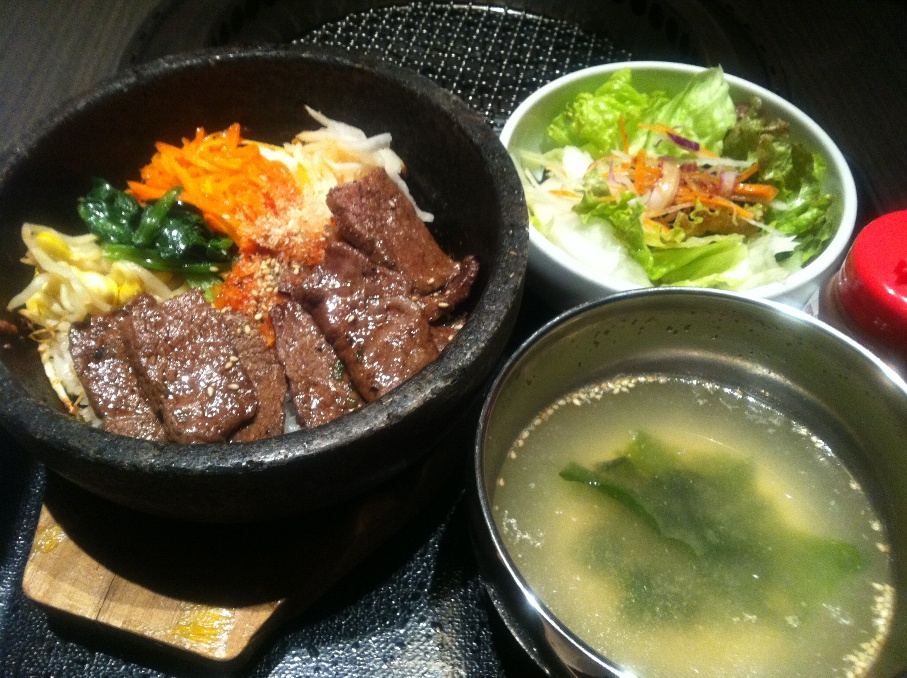 で、待ってる間にランチ。韓国料理屋さんで石焼焼肉ビビンバ❤